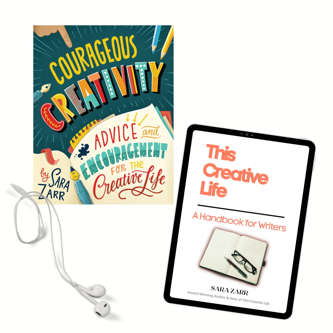 Did you miss out on the subscriber season of This Creative Life, in which I read Courageous Creativity aloud and provided my additional thoughts about the content, specifically framed for adult listeners? You did? Well, dry your eyes, because now you can get that audio. It’s all re-engineered and broken down into separate MP3s for easy navigation. A purchase gets you a free copy of the This Creative Life ebook when it comes out later this year, and helps fund a real audiobook for that one!